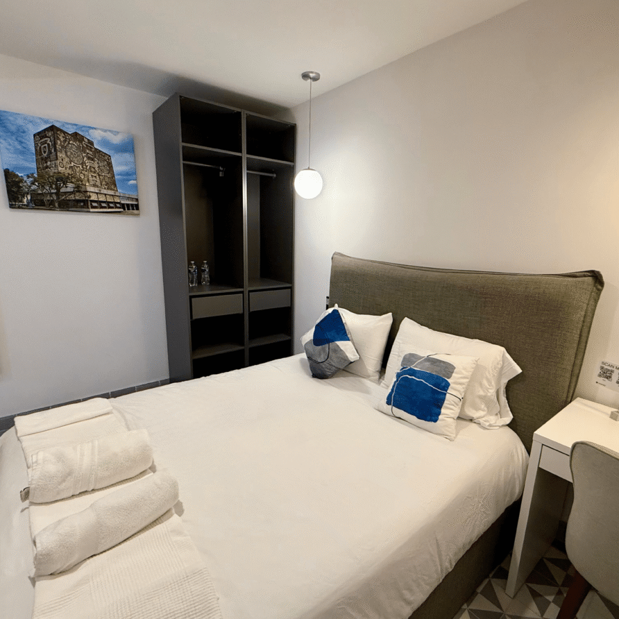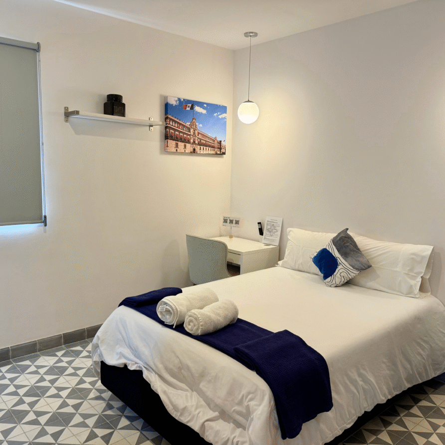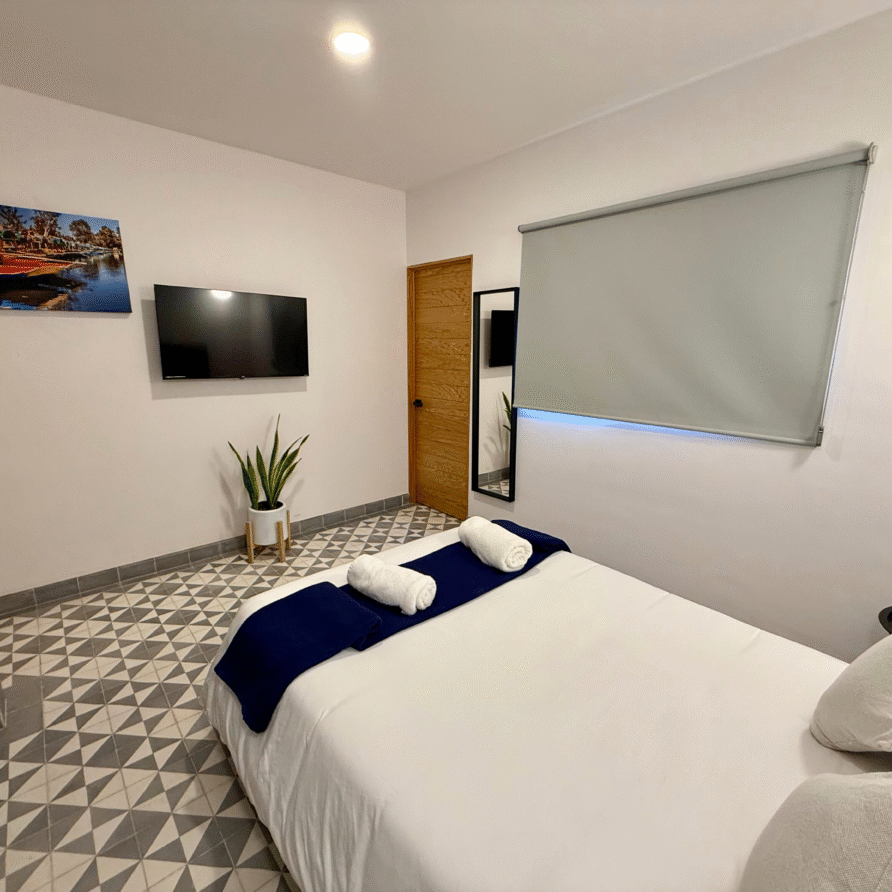 Suite moderna ubicada en Narvarte Poniente, ideal para 2 adultos. Cuenta con cama queen, baño privado, cocineta equipada, smart TV y WiFi de alta velocidad. El edificio ofrece acceso mediante código digital y limpieza profesional.